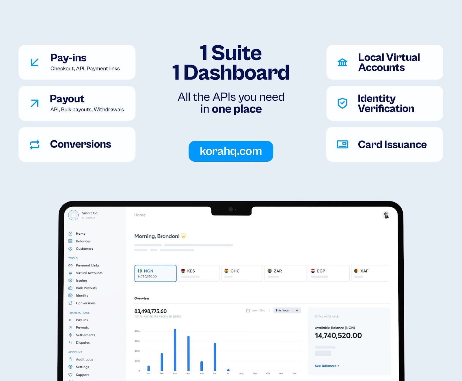 Worse still, managing customer support is often a maze for most when transactions fail or compliance issues arise. With Kora, businesses can access great support, and all the products and tools they need in one suite.